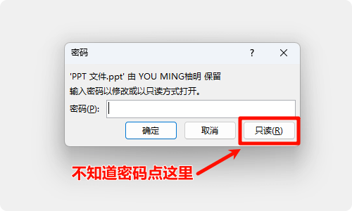 打开 PPT 文件后,如果文件有密码,点击只读即可。