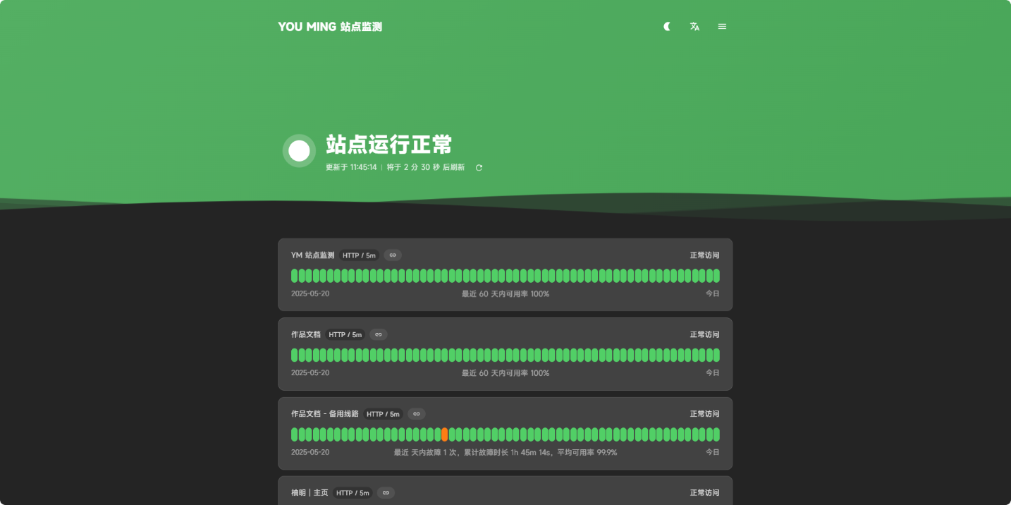 YM 站点监控 是一个由 YOU MING 柚明 于 2025.04.10 开始制作的一个 网页项目 。